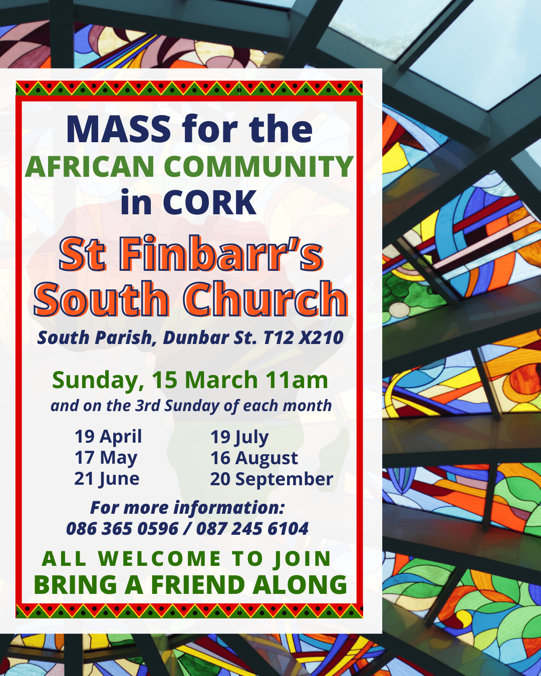 On the third Sunday of every month, St Finbarr’s South Parish opens its doors for a special Mass with the African community in Cork. It’s a space to pray, connect, and feel at home. Whether you come often or it’s your first time, you’re warmly welcomed.